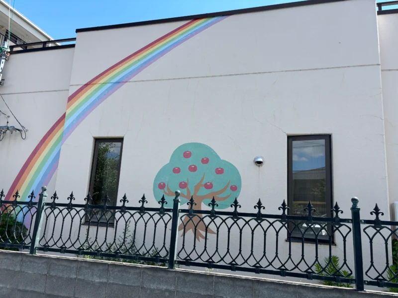 外壁を塗り替え、建物全体が明るく生まれ変わる中で、イラストも鮮やかさを取り戻しました✨